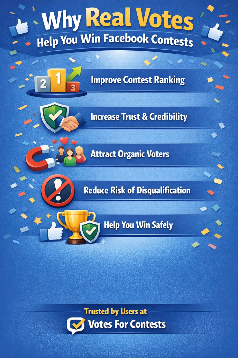 Real votes improve your contest ranking while increasing trust and credibility click here among voters. They attract organic votes, reduce the risk of disqualification, and give you a safe path to winning. Users trust Votes For Contests to provide votes that make a real difference.